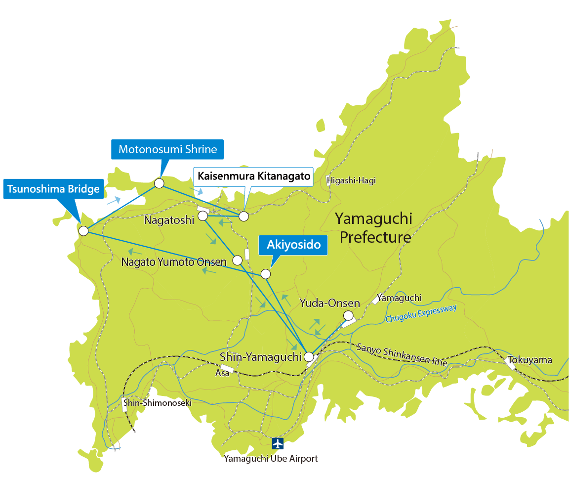 You can also choose your drop-off location in either Nagato City or Yamaguchi City, allowing flexible travel plans—such as continuing by JR train from Nagato City Station toward Hagi, or staying overnight at Nagato Yumoto Onsen to relax and enjoy the hot springs.
