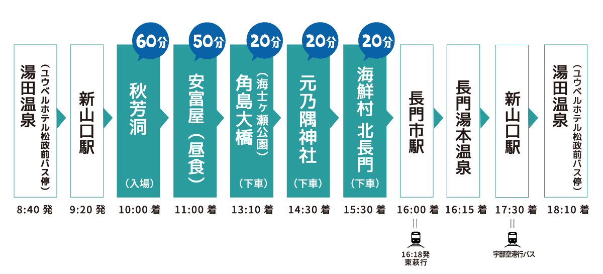 また、降車場所を長門市内と山口市内から選択できるので、長門市駅から萩方面にJRで移動したり、長門湯本温泉に宿泊して温泉を堪能したり…といったご利用もできます!
