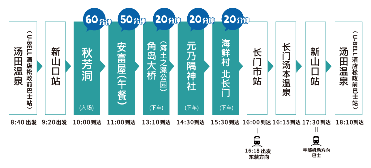 此外,下车地点可选择长门市内或山口市内,您既可以从长门市站乘坐 JR 前往萩方向继续旅行,也可以入住长门汤本温泉,悠闲享受温泉时光,行程安排更加自由。