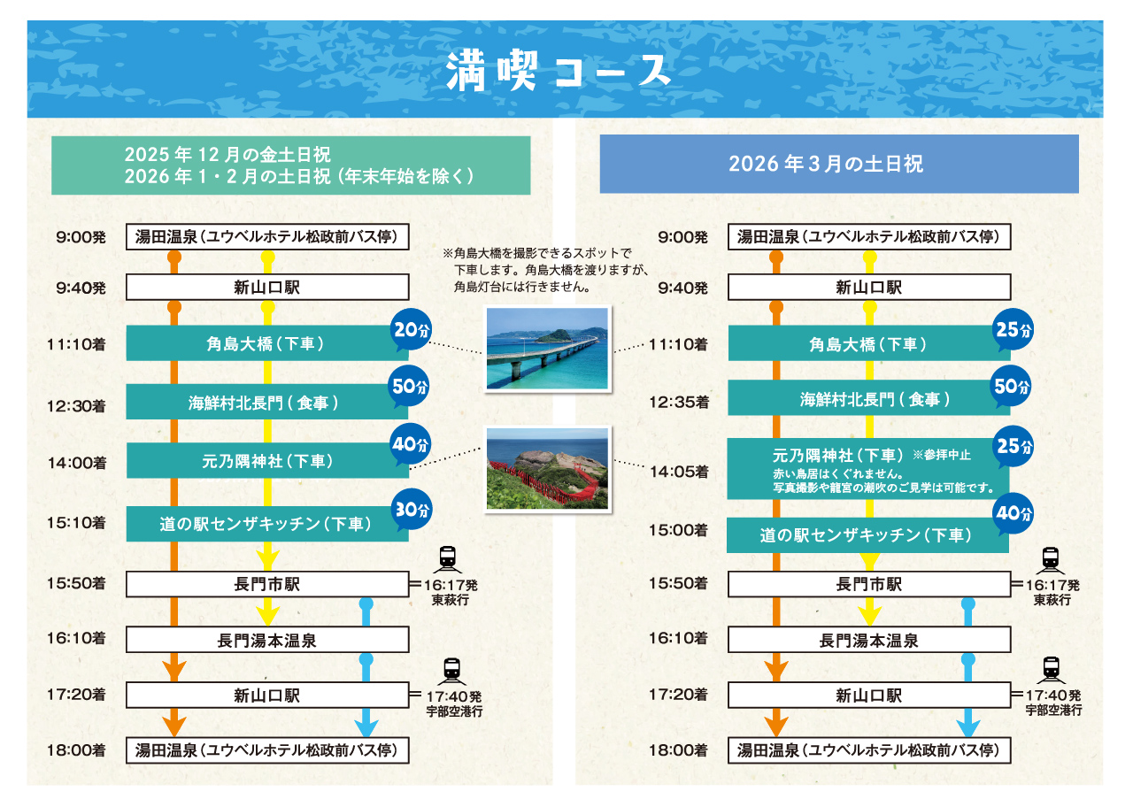 本巴士行程也能作為從長門湯本溫泉或長門市車站前往山口市的交通方式,非常適合入住長門湯本溫泉後隔天利用,輕鬆又便利!