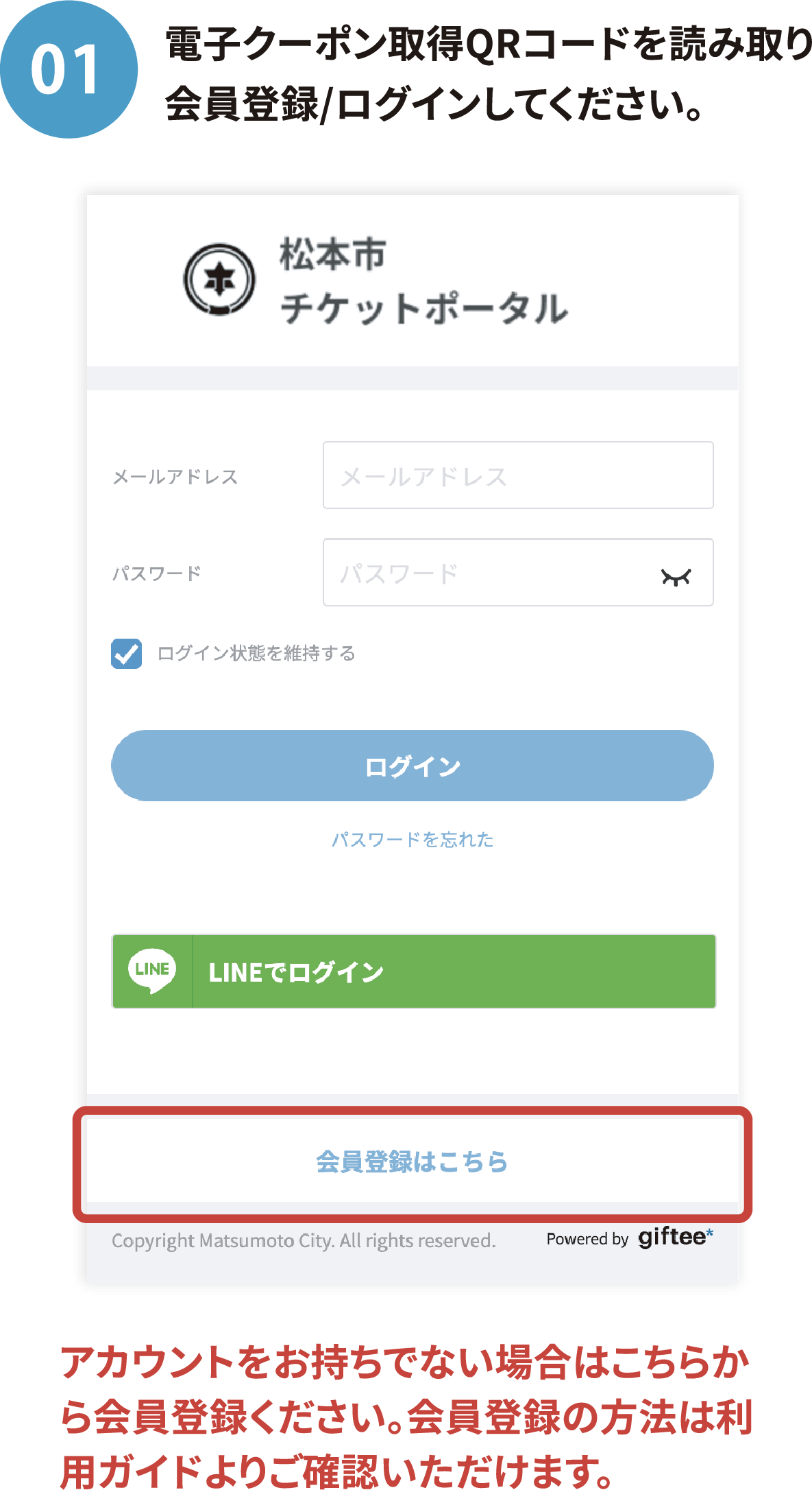 読み取りができない場合は、「松本市チケットポータル」にアクセスし、