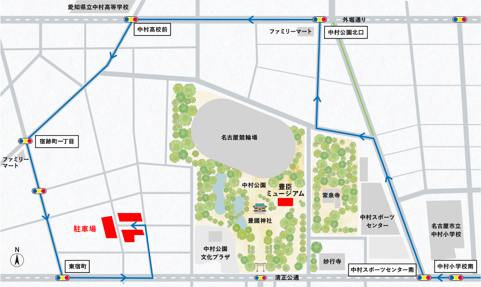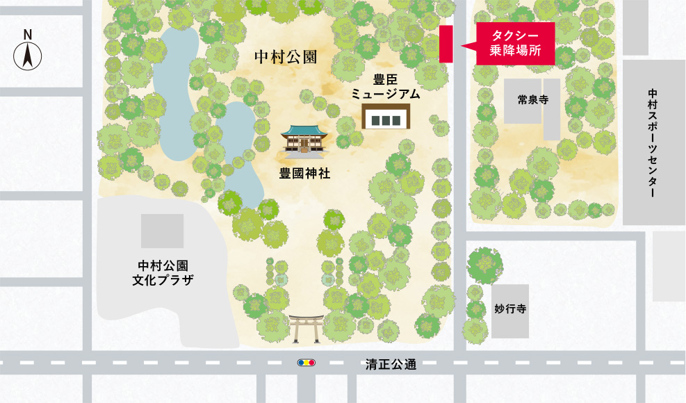 名古屋駅からは地下鉄東山線で「中村公園駅」3番出口から徒歩10分